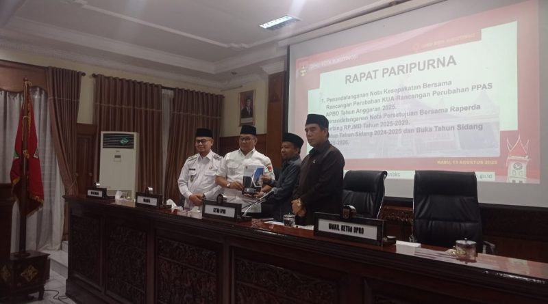 Bukittinggi,Radio Elsifm — Pemerintah Kota Bukittinggi bersama DPRD kota Bukittinggi tandatangani Nota Kesepakatan Bersama Rancangan KUPA-Rancangan Perubahan PPAS APBD Tahun Anggaran 2025, Raperda tentang RPJMD Tahun 2025–2029 dan Tutup Tahun Sidang 2024–2025 dan Buka Tahun Sidang 2025–2026. Kegiatan ini dilaksanakan dalam rapat paripurna di DPRD Kota Bukittinggi, Rabu, 13 Agustus 2025.