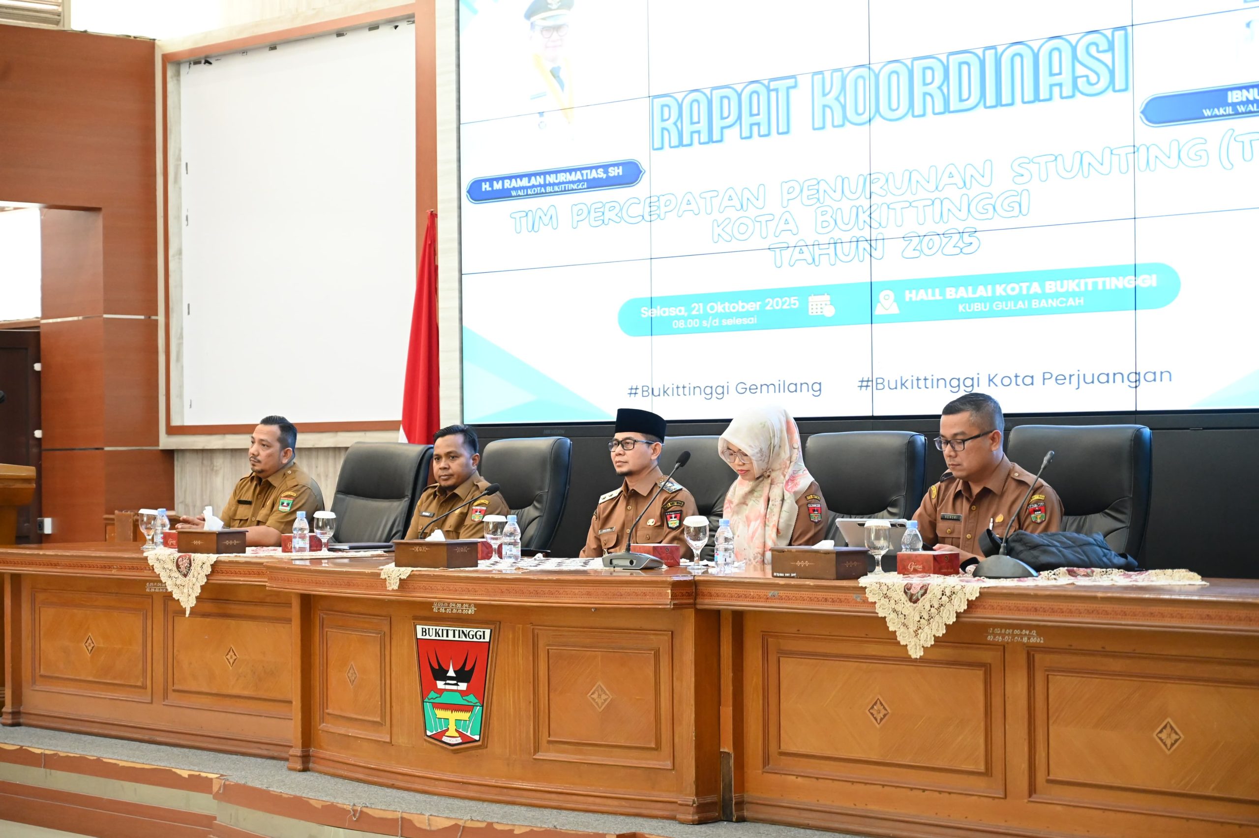 Bukittinggi,Radio Elsifm—– Pemerintah Kota Bukittinggi menggelar Rapat Koordinasi Tim Percepatan Penurunan Stunting (TPPS). Kegiatan tersebut dibuka secara resmi oleh Wakil Wali Kota Bukittinggi, Ibnu Asis di Aula Balai Kota Bukittinggi, Selasa, 21 Oktober 2025.